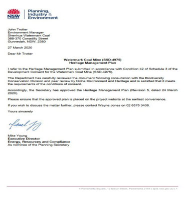 中國神華自籌備沃特馬克項目以來,針對沃特馬克礦區(qū)內(nèi)的各類文化遺跡,中國神華澳洲公司根據(jù)聯(lián)邦和新州兩級政府的環(huán)評批復為磨刀石、疤痕樹等土著遺跡制訂了妥善的保護和遷移措施,編制了全面的《遺跡管理計劃》,2020年3月經(jīng)新州政府正式批準正式實施?!哆z跡管理計劃》在編制過程中廣泛聽取了當?shù)卦∶窠M織的反饋意見,獲得了大多數(shù)原住民的認可和支持。